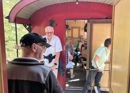 PS: Nach dem der Samstag vorbei war, kam am Mittwoch ein Mail vom sympathischen Kondukteur Max Geiger. Er schrieb, dass es ihm eine Riesenfreude war, einen Teil unserer Gruppe auf seinem Wagen begrüssen und begleiten zu dürfen. Wir waren absolut fröhlich und sehr interessiert. Und für ihn war es eine Première wie auch eine ganz besondere Ehre, mit Leuten, welche hörbehindert sind, kommunizieren zu dürfen. Er selber ist auch von einer Hörschädigung betroffen, jedoch lange nicht so stark wie wir alle. Deshalb freute er sich überaus, dass er uns so manches erklären und zeigen durfte!