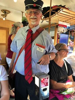 Der Kondukteur der seit 13 Jahren nach seiner Pension freiwillig mithilft wurde von uns informiert, dass wir hörbehindert sind. Er erzählte uns die Geschichte über den Bau der Zahnradstrecke.