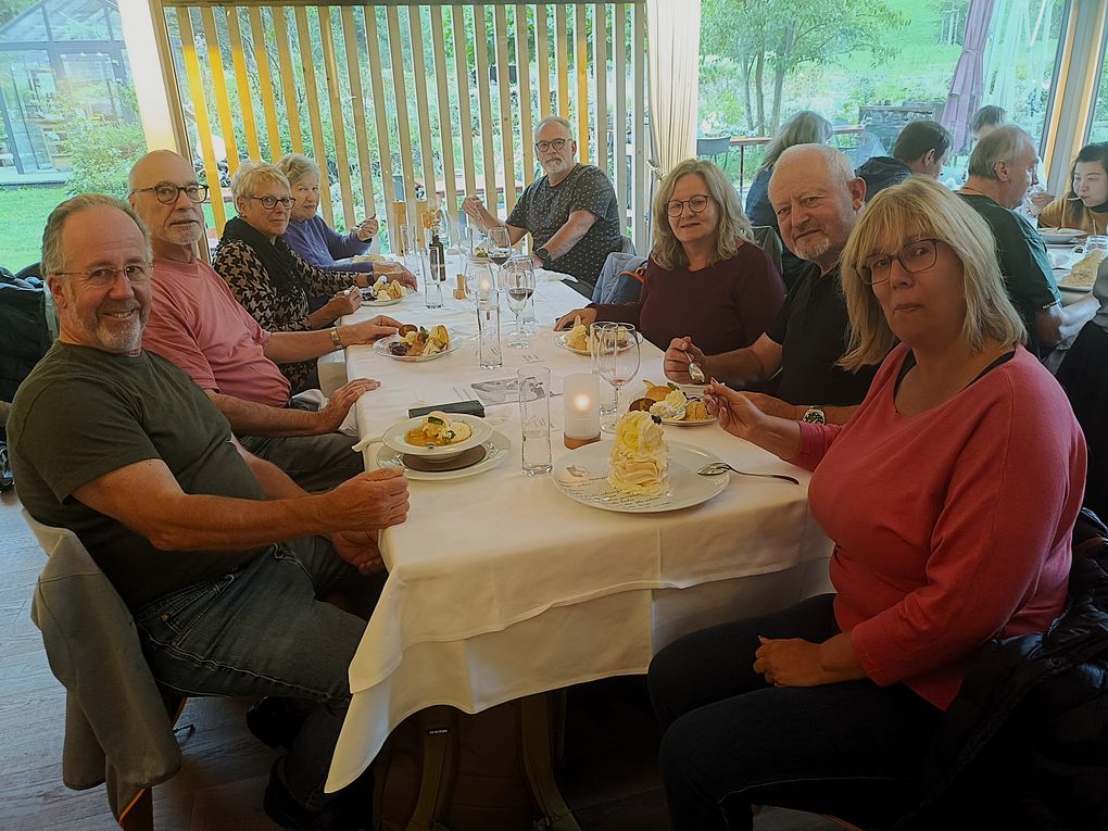Wir bestellten Getränke, und als erstes wurde uns ein kunstvoll angerichtetes Cornet mit Frischkäse serviert, ein Geschenk des Hauses. Danach folgte unser vorbestelltes Menü, das wir alle mit grosser Freude genossen. Zum Abschluss gab es ein Dessert, welches von unserem Verein angeboten wurde. Herzlichen Dank!